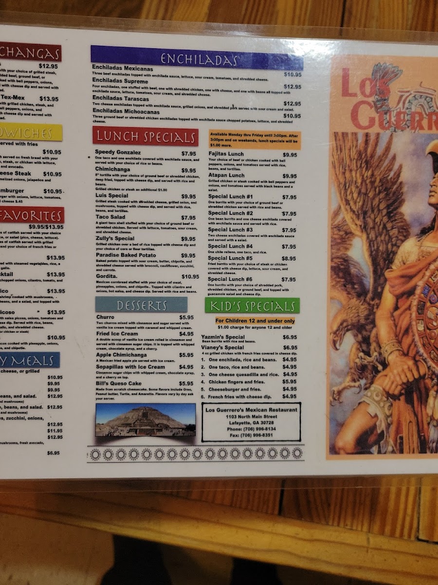 Welcome to the vibrant culinary world of Los Guerreros, located at 1103 N Main St, LaFayette, GA 30728. This restaurant has quickly gained a reputation as a beloved dining spot, thanks to its exceptional food, friendly atmosphere, and outstanding service. Whether you're a local or just passing through, Los Guerreros promises an experience that delights the senses and warms the heart.